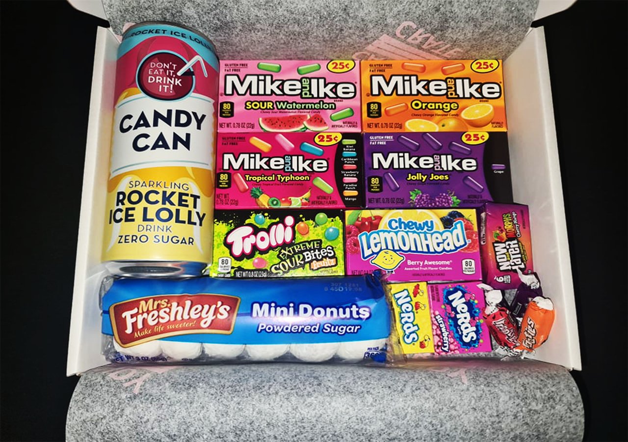 Candy Crate On Twitter Here S An Example Of Our Mystery Boxes For Just 15 With Free Uk Delivery These Boxes Contain 1 Drink And At Least 15 Different Candies Chocolates Savory Items Buy